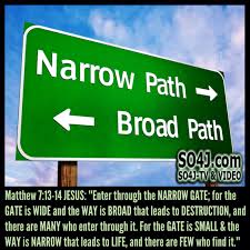 Enter through the narrow gate; for the gate is wide and the way is broad that leads to destruction, and there are many who enter through it. For the gate is small and the way is narrow that leads to life, and there are few who find it.